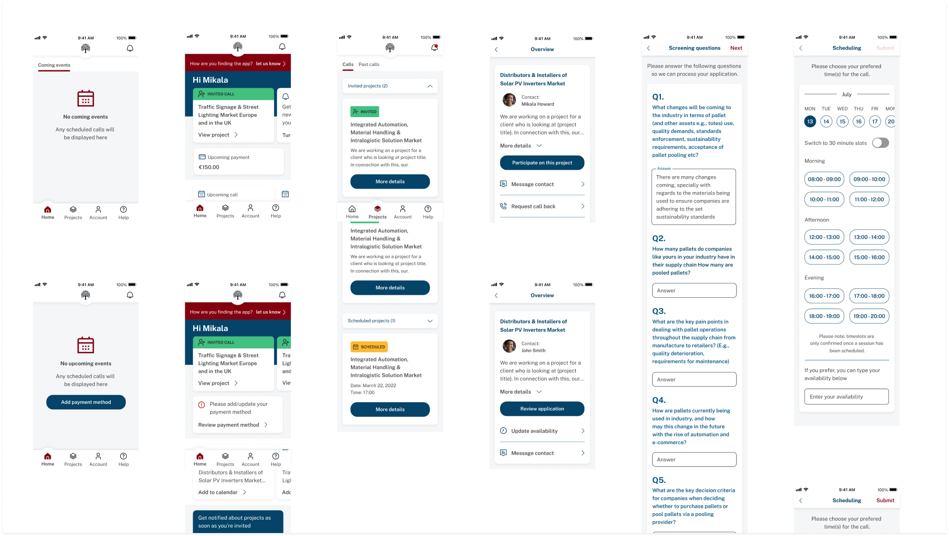 The app needed to support both internal staff recruiting for projects and external experts applying for projects, a good example was the availability tool. It’s important to make sure you speak to and define all user types in the early stages.